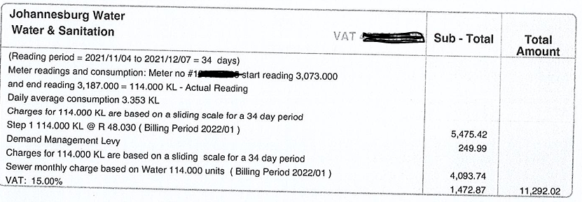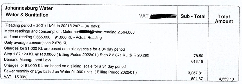 We found it odd and upon asking the owner he mentioned that the City of Joburg was not billing him correctly for years.